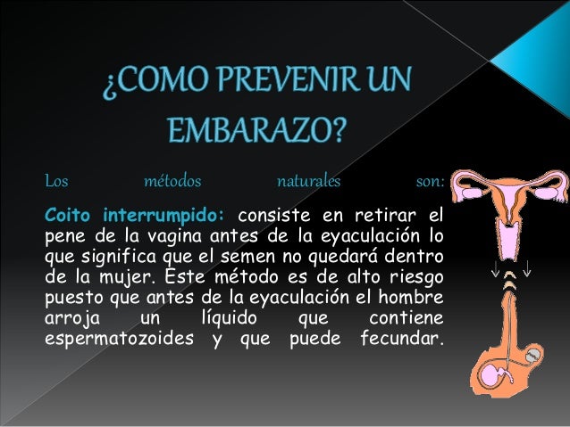 Buen anticonceptivo Y no voy a devatir si es seguro o no lo unico que yo les cuento mi experiencia llevo 13 años de casado mas 2 de tener realaciones con mi esposa es decir un total de 15 años en el que hemos empleado el coito interrumpido y ha sido para nosotros 100 efectivo si tenemos una hija pero fue planeada alguna que otra vez usamos condon un promedio de 3 a 4 veces por año. Coito interrumpido Es considerado un método natural que consiste en eyacular fuera de la vagina. Embarazo con coito interrumpido - Foros - Embarazo.