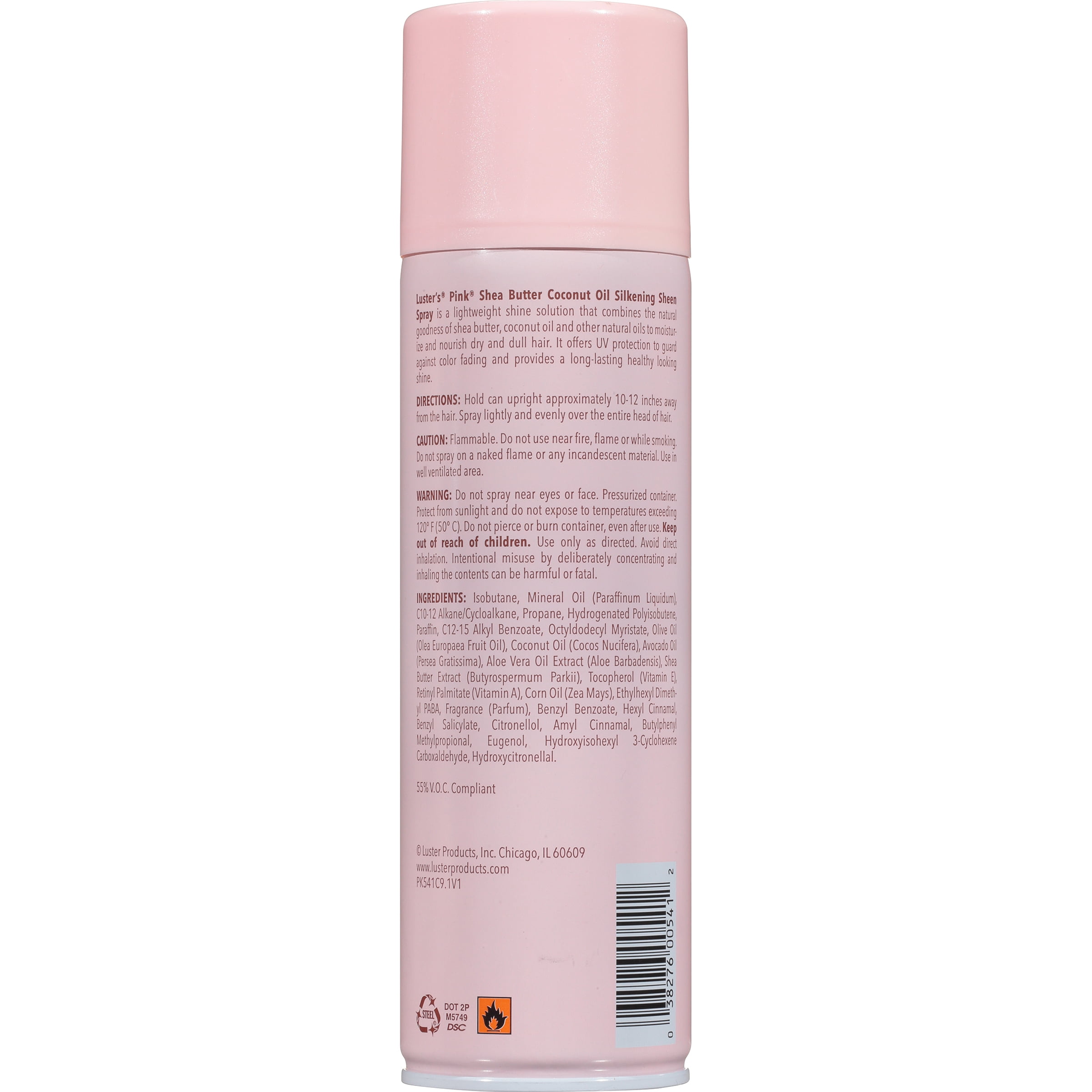Lusters Pink Coconut OilShea Butter Silk Sheen Spray 155 Ounce Brand. It works to keep scalp healthy and free of folicle-clogging dry skin cells and helps protect. Pink Shea Butter Coconut Oil Silkening Sheen Spray.
