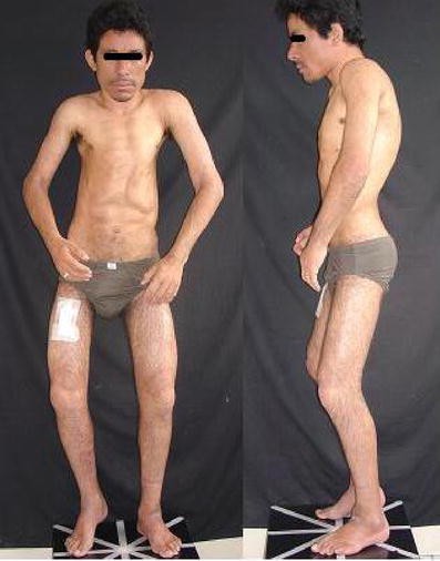A 16-year-old boy presented with thoracic and abdominal asymmetry and orange peel cutaneous lesions with.