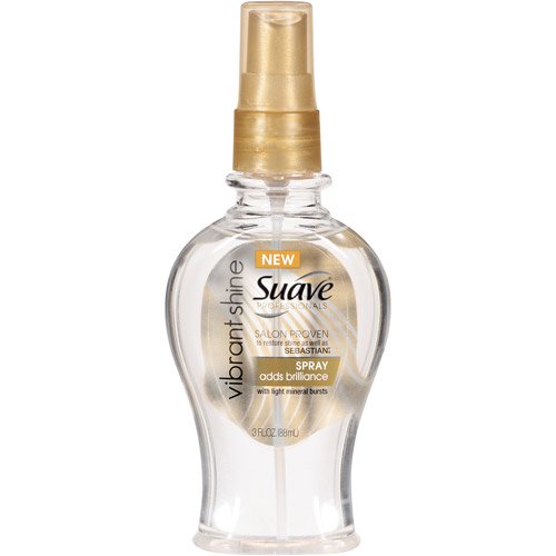The Suave Spray 3 oz contains silk amino acids and light-reflective mineral bursts so you can quickly and easily restore shine to your hair. Suave Professionals Vibrant Shine Spray new version. The Suave Vibrant Shine Spray enables you to lightly mist your hair when extra shine is desired.