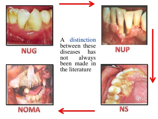 For acute management of periodontal abscess Carry out careful sub-gingival debridement short of the base of the periodontal pocket. Necrotizing ulcerative gingivitis NUG necrotizing ulcerative periodontitis NUP necrotizing stomatitis NS are the most severe inflammatory periodontal disorders caused by plaque bacteria. In certain circum stances PA may have severe systemic consequences23 Although the prevalence of. However it only involves the gingiva periodontal ligament and alveolar ligament. Unlike other periodontal diseases it presents substantial necrosis of gingival tissues and loss of periodontal ligament and alveolar bone. Tobacco products are a leading factor in the development of trench mouth. NUG may include combinations.