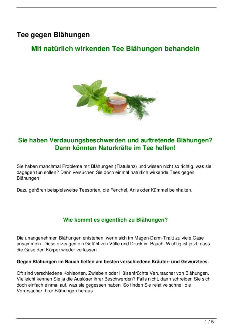 Die Gesamtheit der Inhaltsstoffe hat neben einer beruhigenden Wirkung vor allem nämlich auch einen entkrampfenden und blähungslösenden. Vier-Winde-Tee gegen Blähungen Als Teezubereitung empfiehlt sich der Vier-Winde-Tee nach dem Rezept von Rudolph Fritz Weiss.