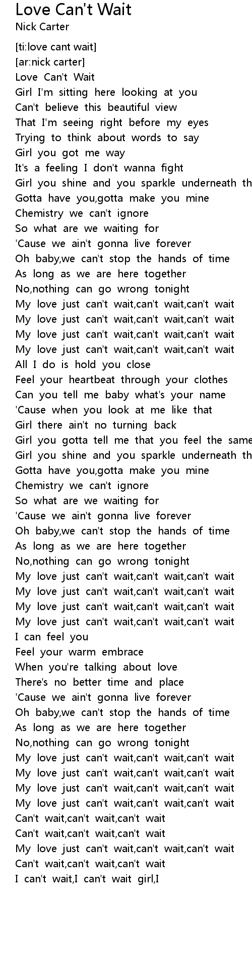 Its true that the other girls. I Cant Wait Lyrics. Temptations Its knocking on your door And youre waiting On me baby on me Wont you hold me close Baby Ill go wherever you go Even if it means that Im on the road tonight And I dont Your company Baby you cant get enough of me I wait for you you wait for me Tonight.