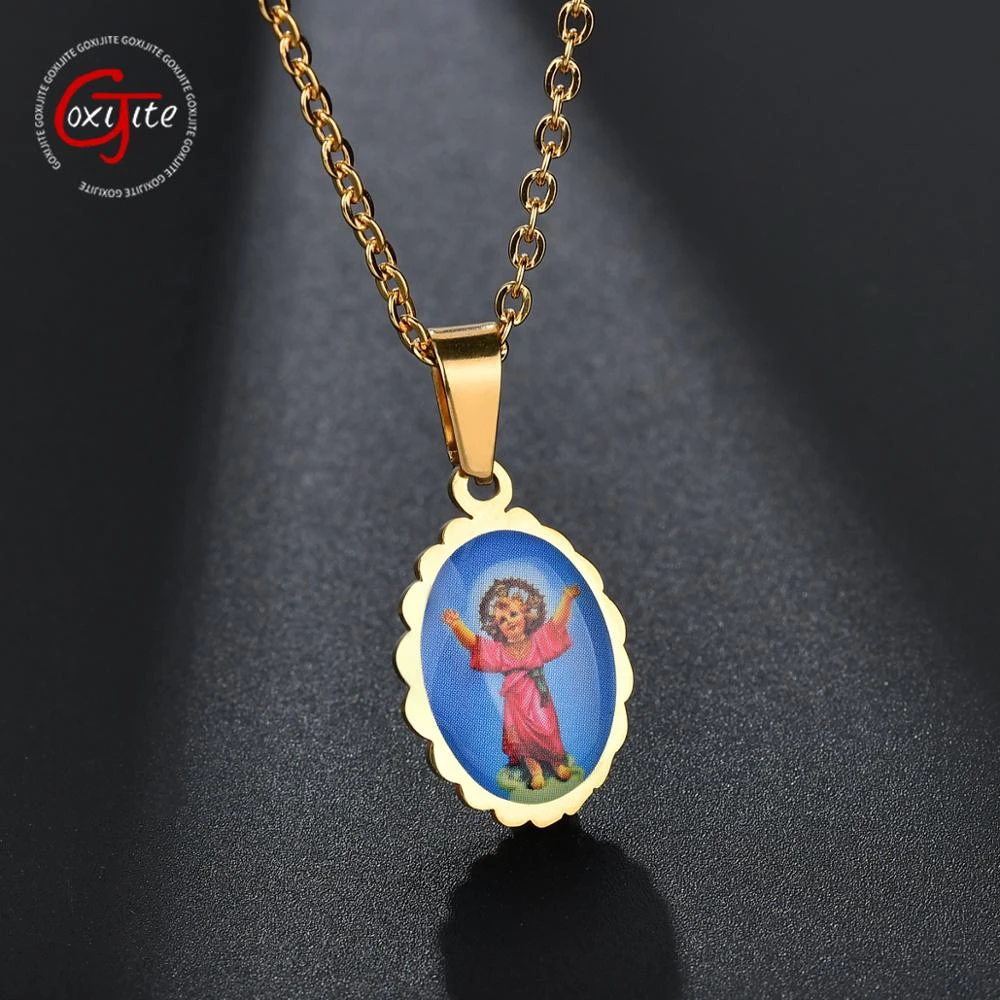 Baby Jesus Necklace for Women Men Boys and Girls 18K Gold Plated Flat MarinerMarina 060 3MM Chain Necklace with Baby JesusDivinio Nino Pendant 43 out of 5 stars 121 1499 14. For a truly unique look choose our exclusive black gold chain with black gold Jesus pendant. Gold Virgin Mary with Baby Jesus Christian Religious Charm Necklace.