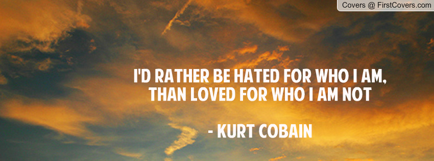 Id rather be hated for who i am than to be loved for who i am not. I however have no evidence of this. My mother encouraged me to be artistic. Too much pressure yeah What is she stupid. But Id rather be hated for what I am than loved for what Im not. Rather be dead than cool. Just for being Being as an ocean Be japy ev. Mar 29 2015 - Id rather be hated for who I am than loved for who I am not. American - Singer February 20 1967 - April 5 1994.