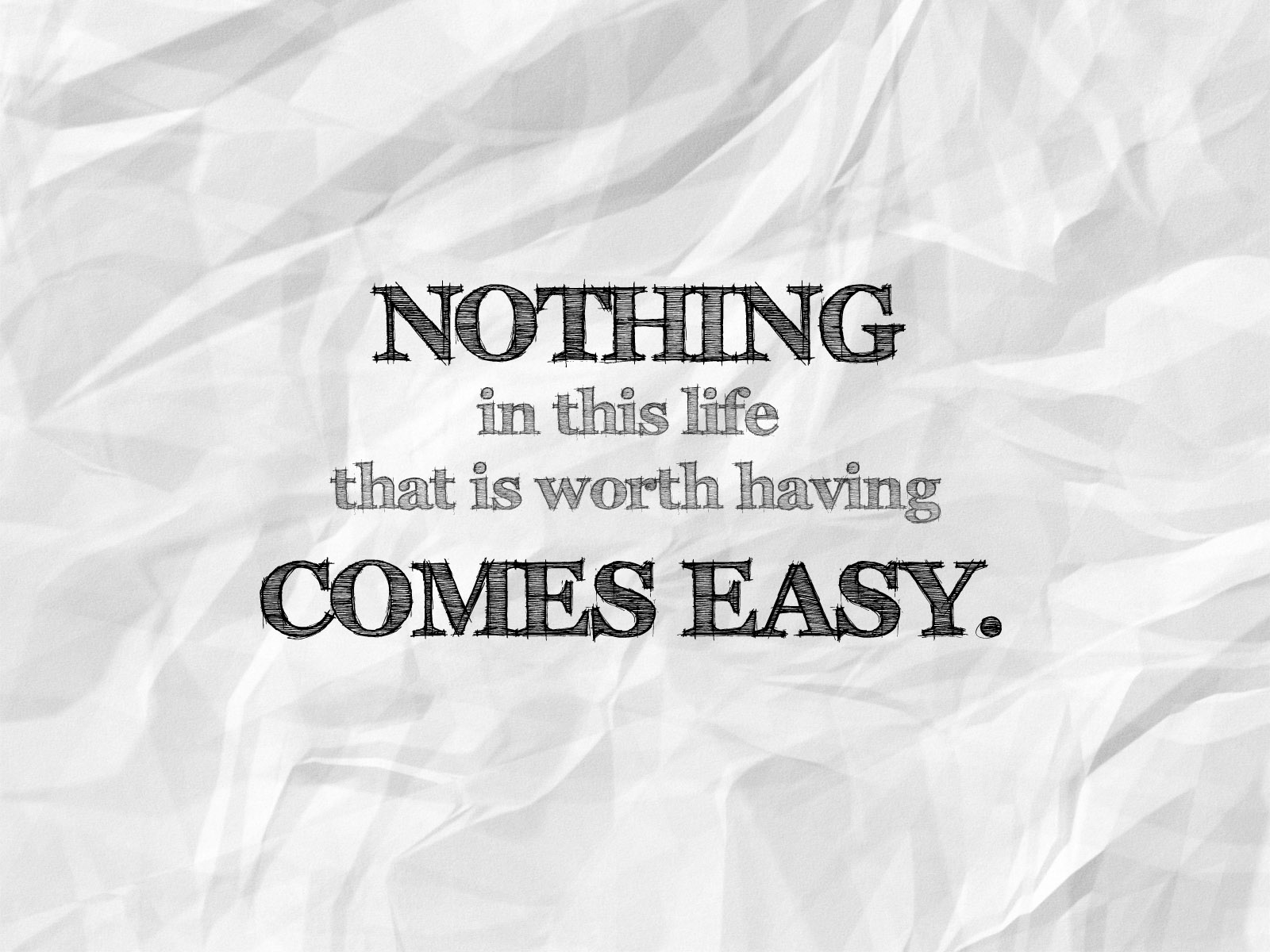 Jean Racine Never said it would be easy. Indira Gandhi Nothing in life comes easy. Nothing great comes easy and nothing easy can ever equate to greatness.